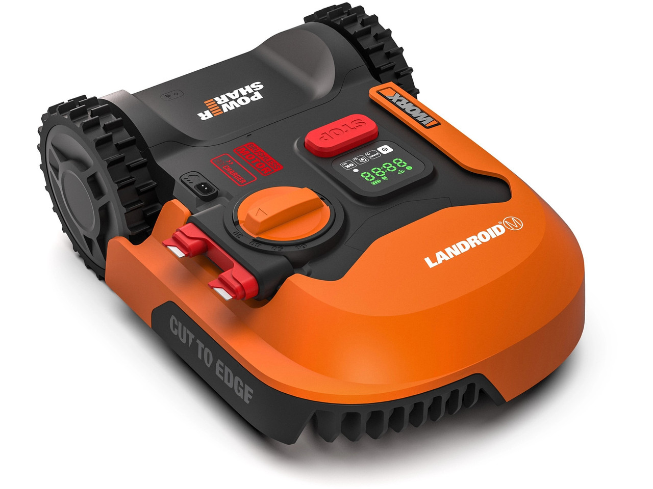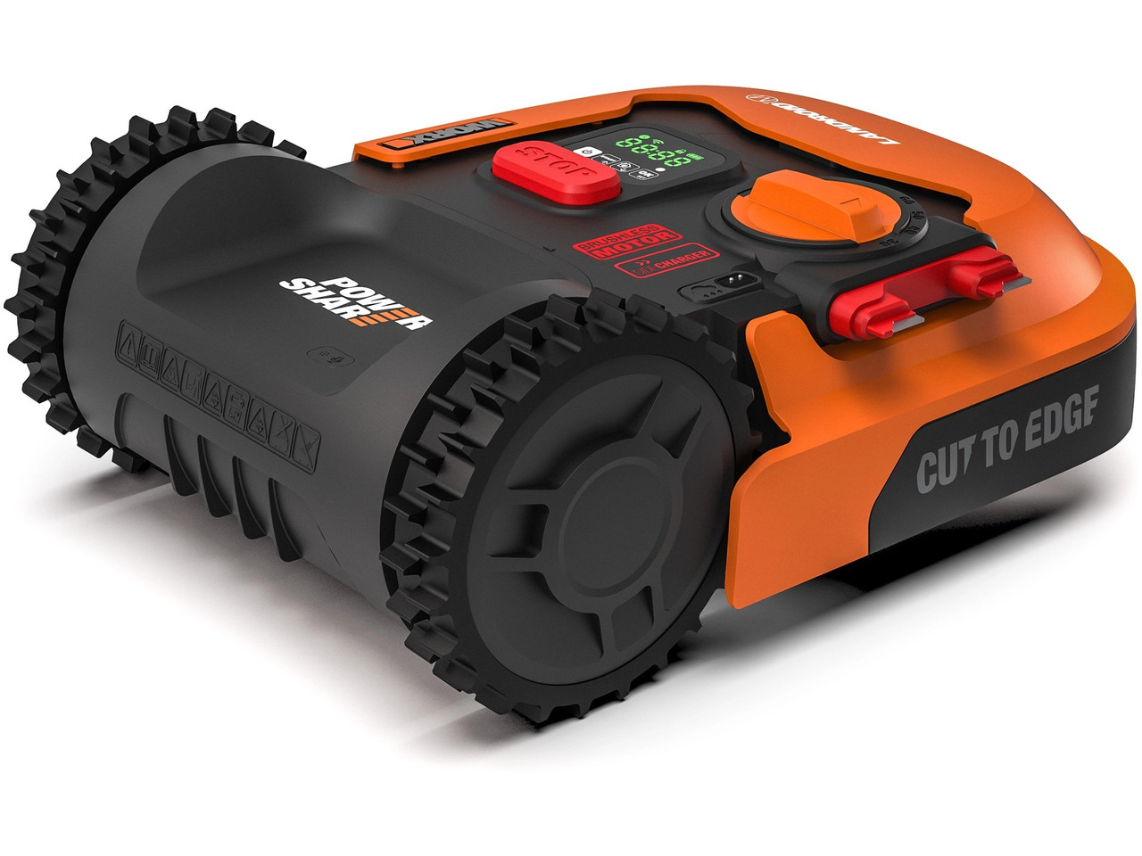 Der Landroid M500 arbeitet mit einem Begrenzungskabelsystem und wird von einem 20 V Worx PowerShare Akku betrieben, der auch mit anderen Worx-Geräten kompatibel ist.
